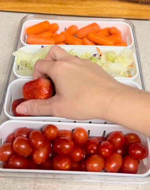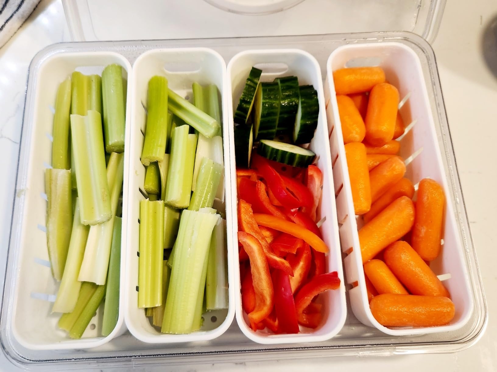 Sus cuatro compartimentos amplios permiten separar frutas, verduras, snacks y comidas preparadas, evitando mezclas indeseadas y facilitando el acceso rápido a cada alimento almacenado diariamente.